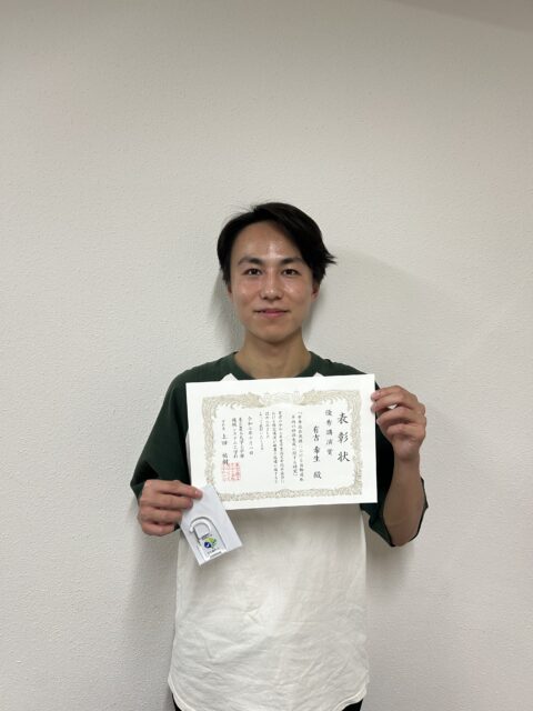 本研究室学部4年 有吉 希生さんが,9月29日に行われました卒業論文中間発表会にて「優秀講演賞」を受賞しました。
